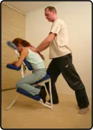 Stoelmasssage:Tegenwoordig heeft iedereen het ontzettend druk. Niet alleen op het werk, maar ook privé. Mensen komen niet meer aan zichzelf toe. Met stoelmassage krijg je even tijd om bij te komen. De massage neemt maximaal 20 minuten in beslag en wordt gekleed uitgevoerd. Een speciale stoel zorgt voor ondersteuning van het lichaam en nodigt uit voor een heerlijke ontspanning. Stoelmassage wordt in de meest uitlopende situaties toegepast. Bijv. bij workshops, openingen, beurzen, sportdagen, bedrijfsuitjes, promotionele akties, winkels. Kortom, bij iedere situatie waarbij men werknemers, klanten of bezoekers op een positieve manier extra aandacht wil geven.